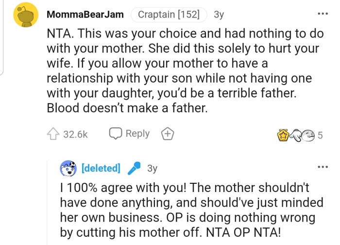 The commenters believe OP is NTA, a title they don’t believe OP’s mother is worthy of. According to them, she crossed many boundaries, and OP is right to be upset.