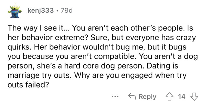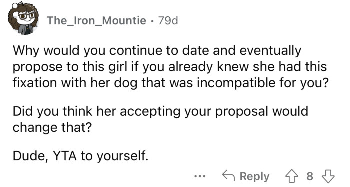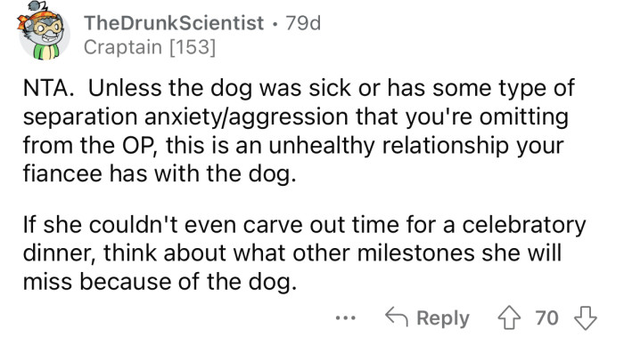 This situation highlights the complexities of balancing personal interests with relationship needs. The Redditor's feelings of being overshadowed by his fiancée's attachment to her dog suggest a need for open discussions about priorities. Engaging in these conversations can help couples foster mutual understanding and strengthen their relationship.