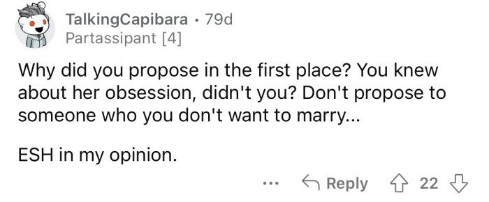 When you agree to marry someone, they become your number one priority, right? Well, not always, as Reddit user u/National-Paint-7928 recently discovered.