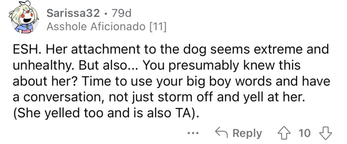 Moreover, the importance of compromise in relationships cannot be overstated. A study published in the Journal of Marriage and Family indicates that couples who practice compromise tend to report higher satisfaction in their relationships. By discussing ways to balance the fiancée's love for her dog with the Redditor's need for attention, the couple can find mutually agreeable solutions that strengthen their bond.