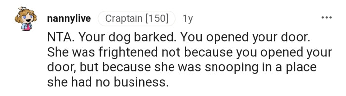 OP got her dog to scare her neighbor after catching her peeping under her door