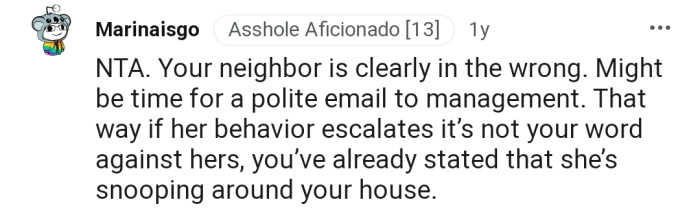 In this case, approaching the nosy neighbor with a light-hearted comment could have diffused the tension and created an opportunity for dialogue rather than confrontation.