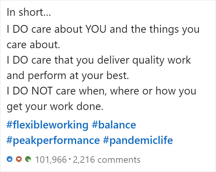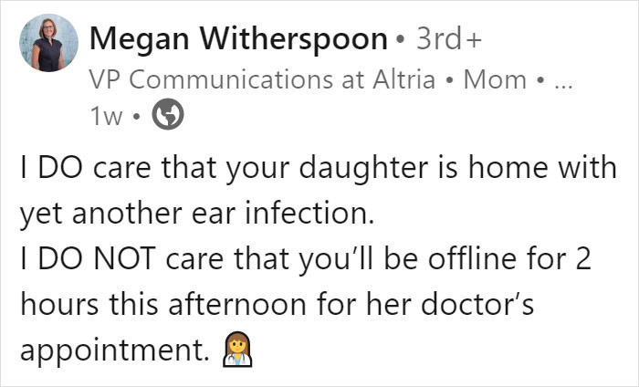 While Megan told Bored Panda that she wasn't expecting the responses she received, she did say: “I know many people are passionate about this topic, and previous posts about flexibility and empathy in the workplace have gotten good engagement, but not to this magnitude.”