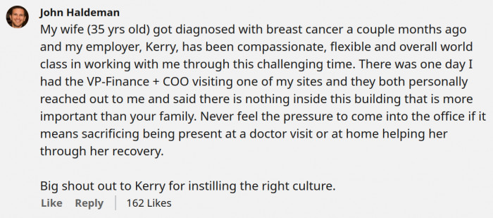 Megan believes that genuinely caring about your employees should be at the heart of every company. She received over 104k positive reactions and more than 2,200 comments from other users on LinkedIn!