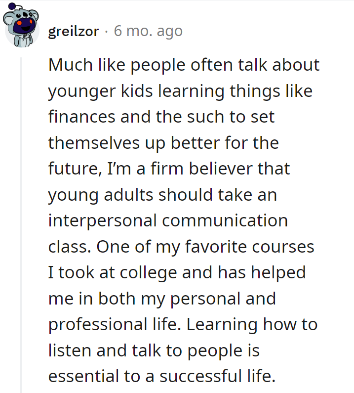 "Young adults should take an interpersonal communication class."