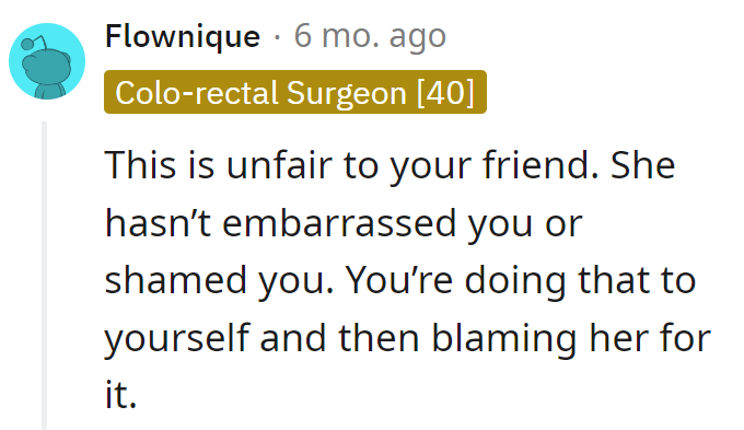 OP is now feeling guilty for not anticipating her friend's embarrassment. She says she should have been honest about the original reason for not coming.