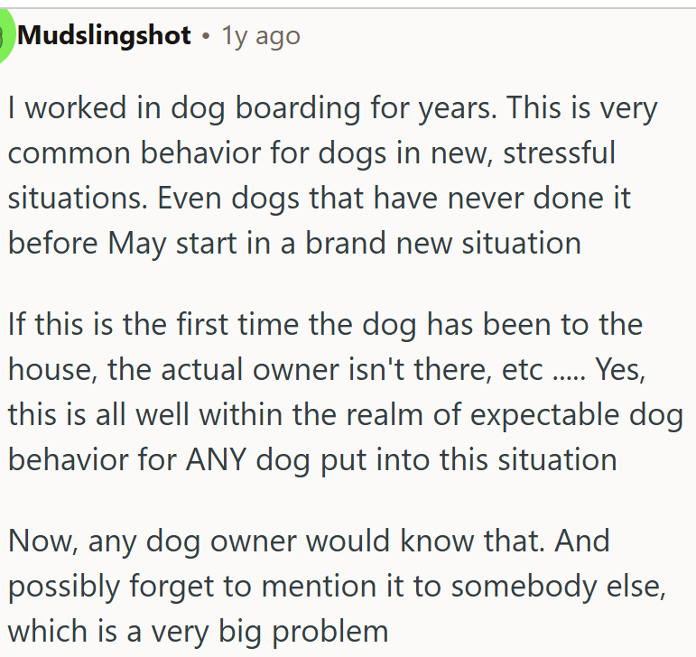 This story is a reminder that pet-sitting is more complicated than it looks. A dog that thrives in one environment may act out in another, especially when routines change and familiar people are gone.