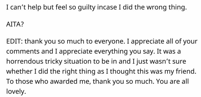 The guilt is understandable given their decade-long friendship, but again, this is not OP's fault.