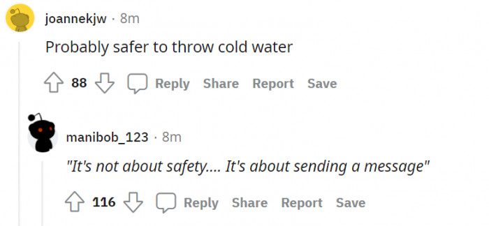 Soapy water requires a shower! Dude's got his ideas clear.