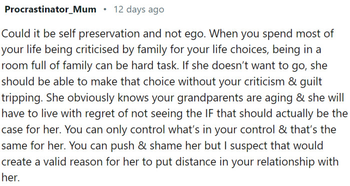RedditOP understands that it's her sister's choice, but she thinks the reasoning is somewhat selfish.