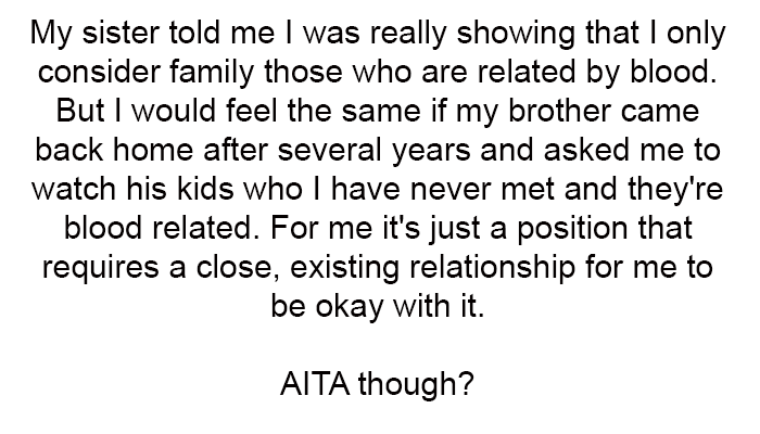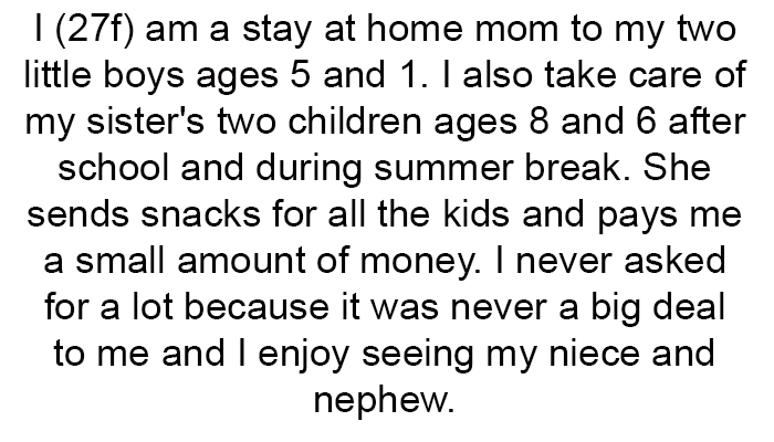 AITA For Ending My Childcare Agreement With My Sister Because I Don't Want To Care For Her Future Stepkids Who I Never Met