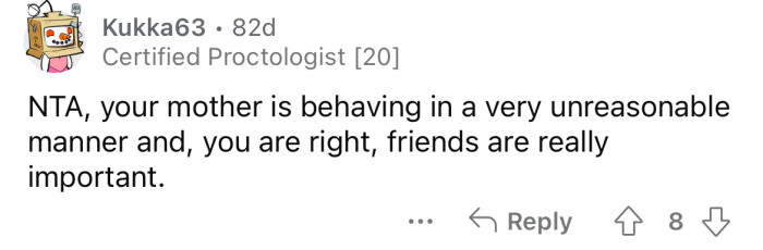 "It's your mother who is acting unreasonable and selfish."