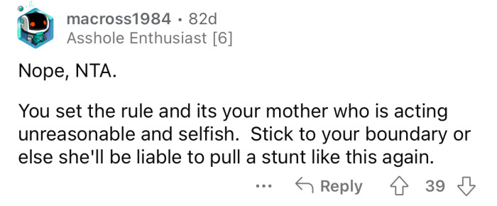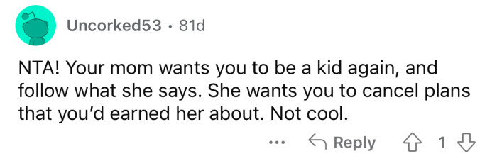 What are your thoughts on this situation? Do you think the OP should have been more accommodating, or was his mother out of line for going back on their previous agreement?