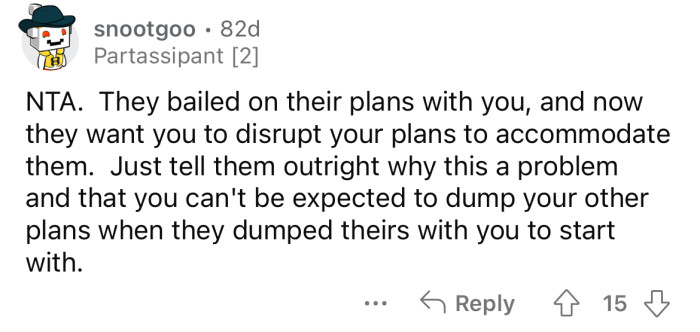 "They bailed on their plans with you."