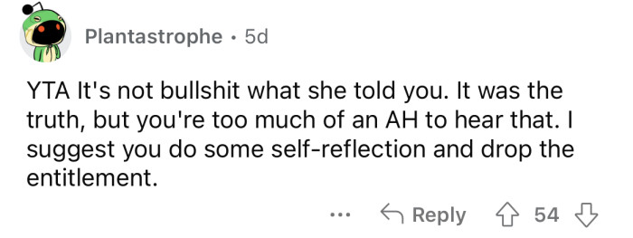 This scenario illustrates the complexities of entitlement in relationships, especially when expectations clash with reality.
