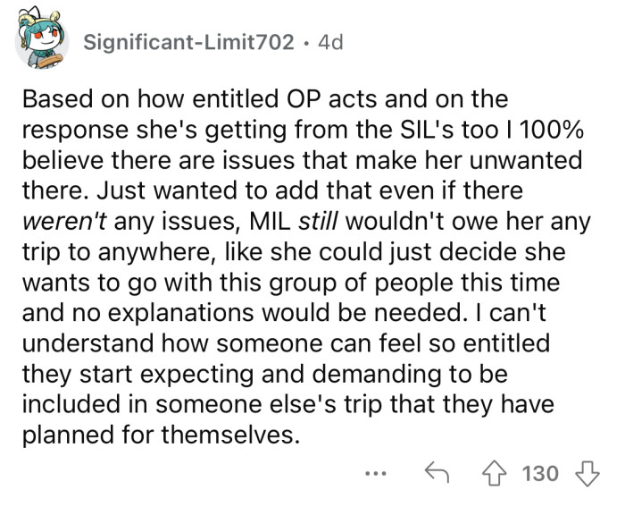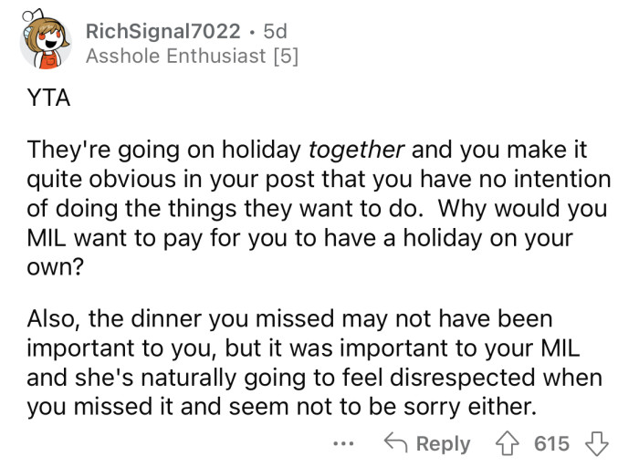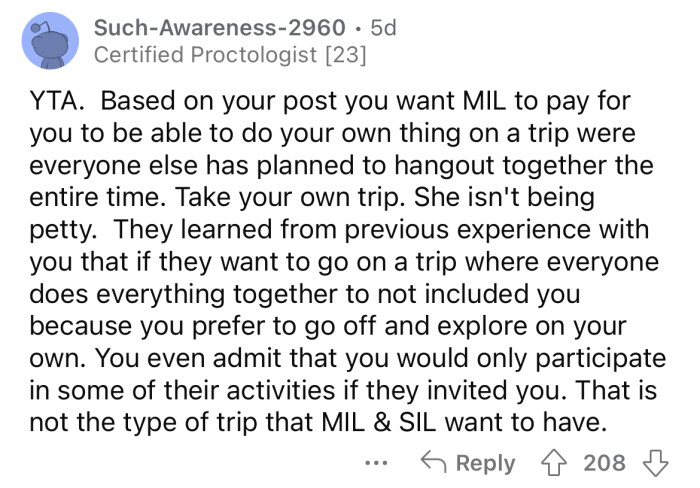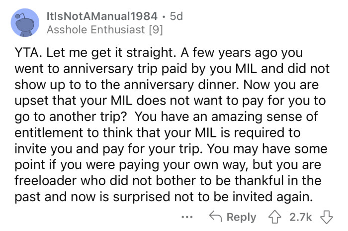 Redditor Gets Slammed For Her "Entitled, Gross Behavior" When Her MIL Refuses To Pay For Her To Go On A Family Trip