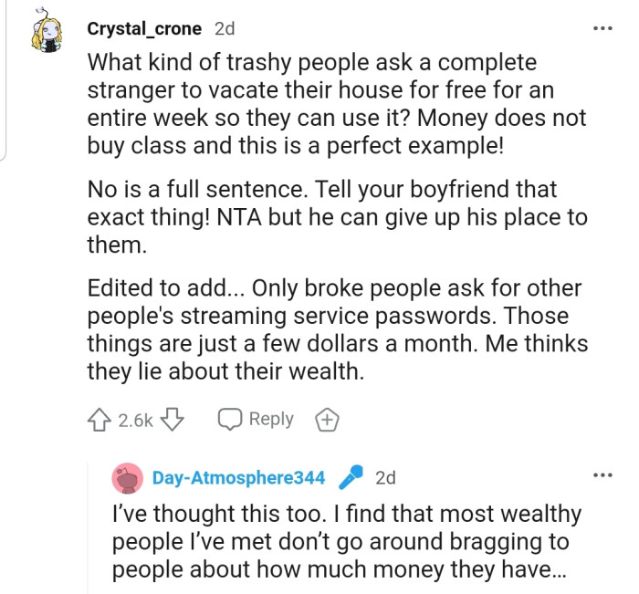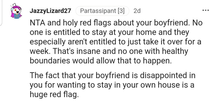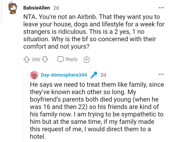 Apparently, his friends are visiting with their kids, and they want OP to vacate her home temporarily to allow them exclusive use of her space. What makes this even more intriguing is that OP has never met or spoken to these friends.