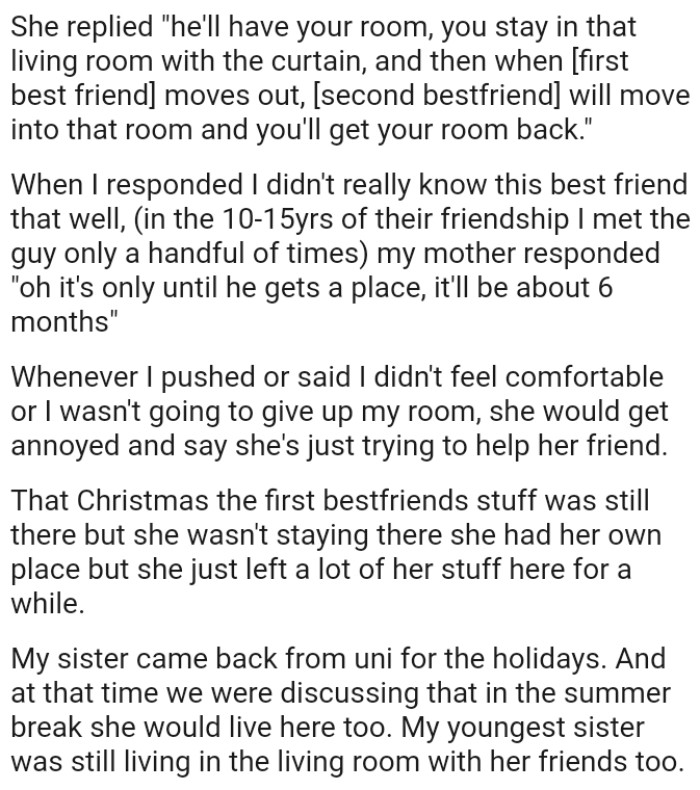 Lady Shares How She Stopped Her Entitled Mom From Renting Out Her Spare Room To Homeless Friends