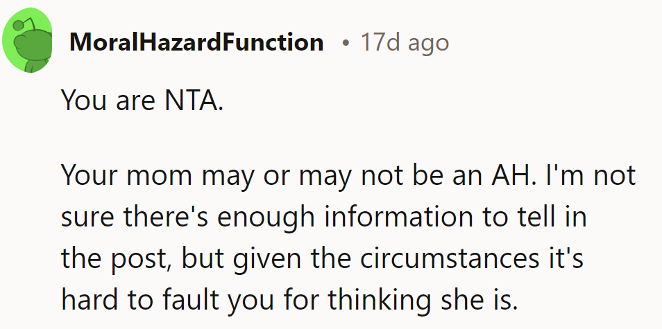 OP Questions if Their Anger is Justified or if They Should Communicate with Their Mom as Suggested.