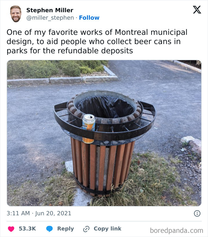 "This Special Rack Is For Empty Cans So People Can Collect Them For Deposit Money"