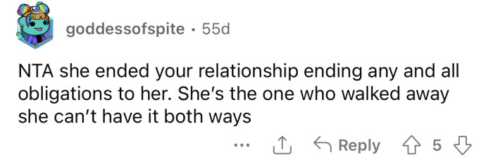 "She is your ex by her choice."