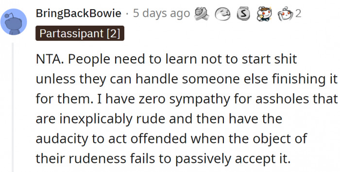 "People need to learn not to start shit unless they can handle someone else finishing it for them."