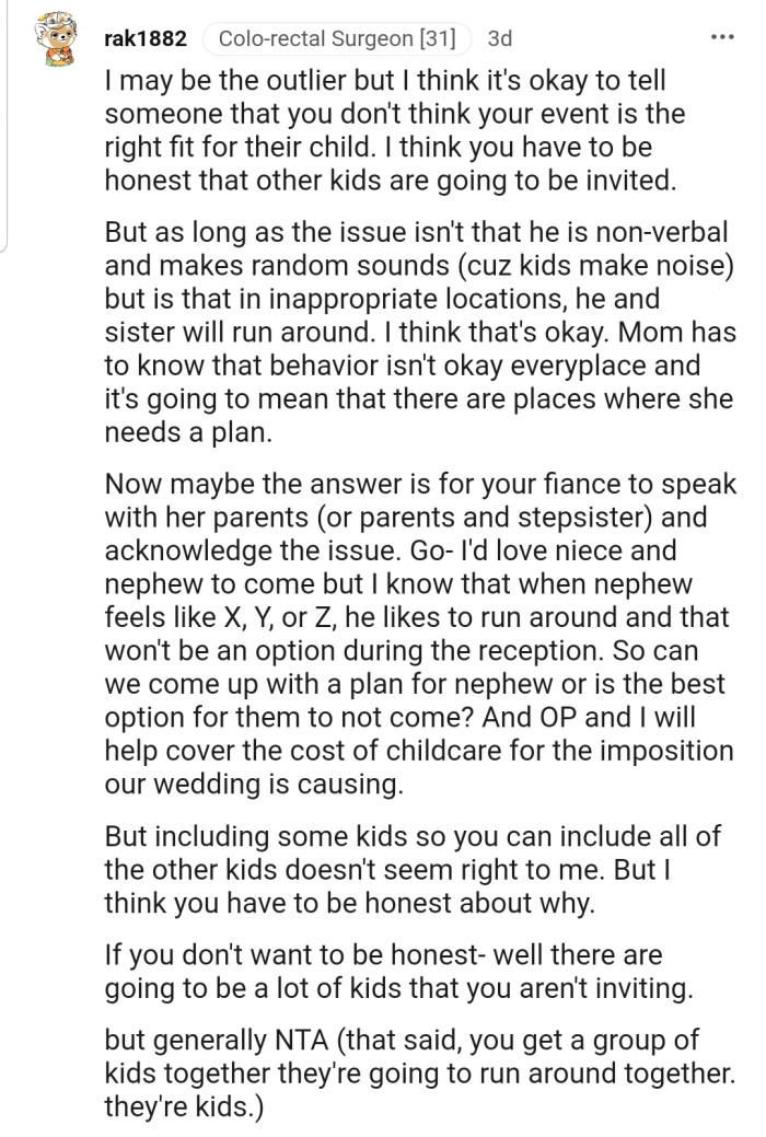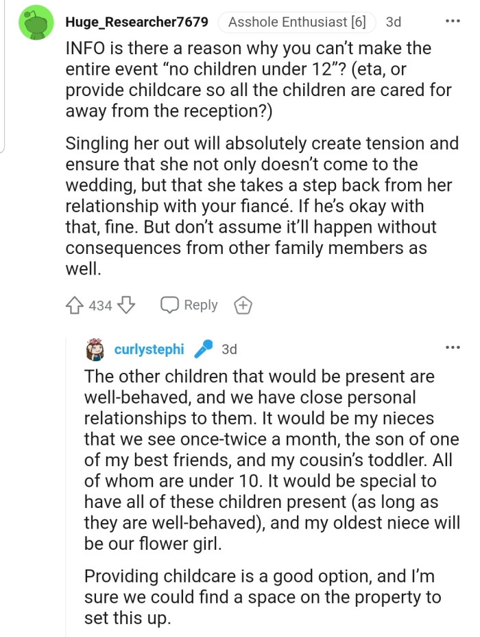 The dilemma they face: Will we be the a**holes if we request alternative childcare arrangements for these children, potentially causing their mom to decline their wedding invitation altogether?