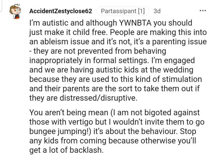 "I may be the outlier, but I think it's okay to tell someone that you don't think your event is the right fit for their child."