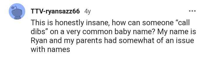 The commenters were totally shocked at how ridiculous the entire scenario is. Telling someone that you called dibs on a baby name is quite hilarious and would certainly stun any mom in that position.