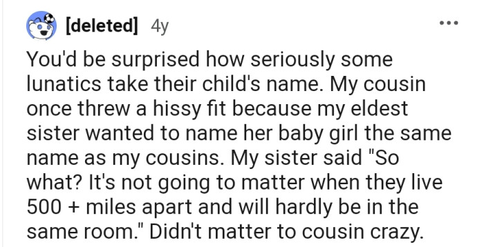 "This is honestly insane, how can someone “call dibs” on a very common baby name?"