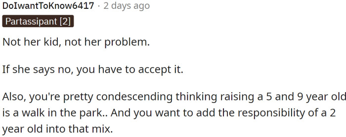 OP could not understand why watching his daughter would be any more inconvenient than watching her own children, who were of a similar age. Feeling frustrated and disappointed, OP couldn't help but think about all the favors he had done for his sister in the past, from mowing her lawn to giving her free Adderall and even babysitting her children when they were the same age as his daughter.
