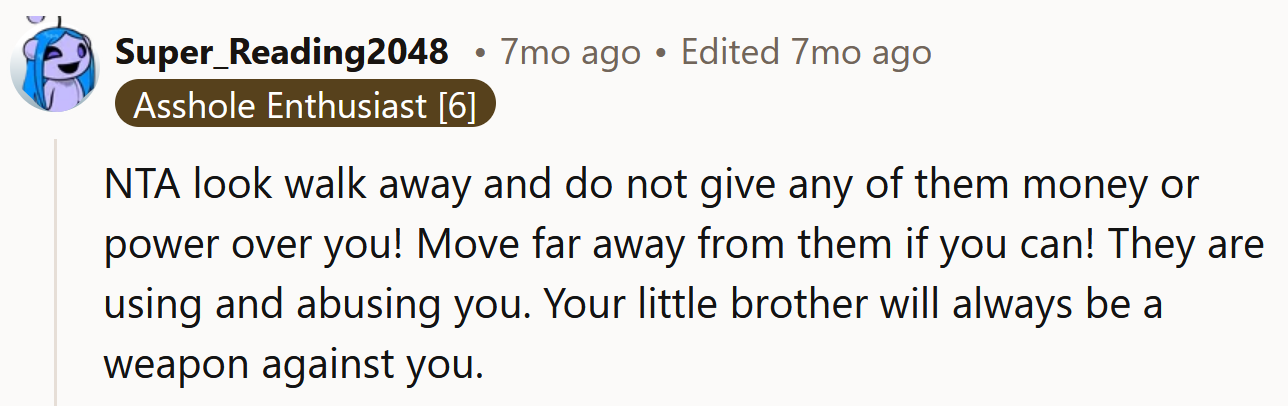 The OP was forced to get a job when she was 15, while her brothers were given a free ride. Recently, the Redditor moved out of her home and into her step-aunt's house.