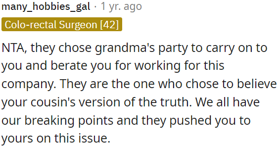 As the family discussion spirals into a one-sided critique of the employer, OP feels compelled to reveal the truth. Dave was not an innocent victim of corporate harshness; he had been stealing from the register.