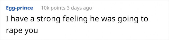 Disturbingly, he continued, "Let me come over, and you'll see I won't rape you."