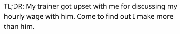 haveuinthescopeThe trainer grew increasingly upset with OP as time passed and said, "This is why I don't discuss wages; it should be illegal!"