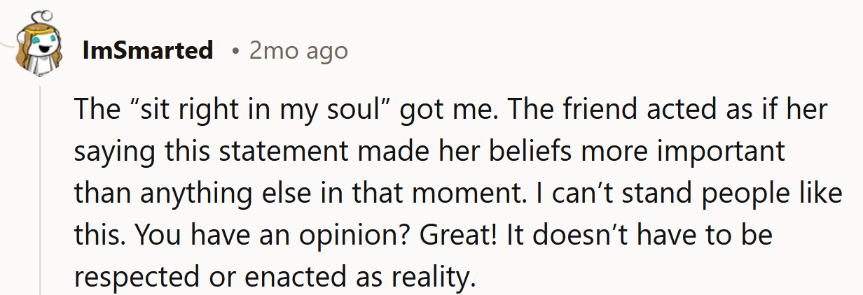 The Redditor says she doesn't think she did anything wrong, but her friend's reaction has made her wonder if she's the a**hole here. Keep scrolling to see how people reacted.