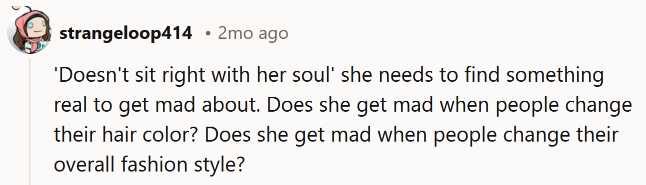 In this case, the friend’s offense may stem from her own insecurities regarding beauty and authenticity, reflecting broader societal pressures.
