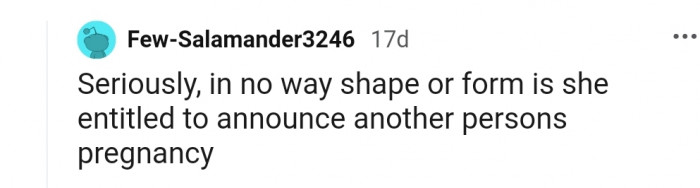 "In no way, shape, or form is she entitled to announce another person's pregnancy."