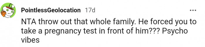 "He forced you to take a pregnancy test in front of him??? Psycho vibes."