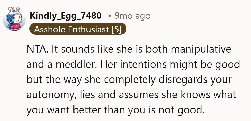 This can strain family ties and make one question the intentions behind their actions. In the end, everyone needs to respect personal boundaries, even if their intentions are rooted in concern.