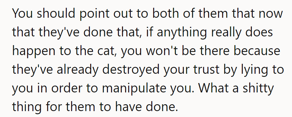 Using a pet's fate as bait? That's a whole new level of cat-and-mouse manipulation.