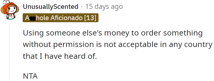 Redditors were 100% in support of OP on this one. Across cultures and continents, the consensus remains steadfast – thou shalt not treat thy host's wallet as thy personal piggy bank, especially not during a family dinner.