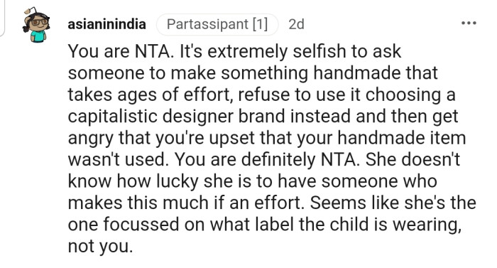 This situation highlights how deeply emotional connections can be tied to gifts and personal effort. The disappointment felt by the Redditor underscores the importance of recognizing and honoring these feelings within family dynamics.