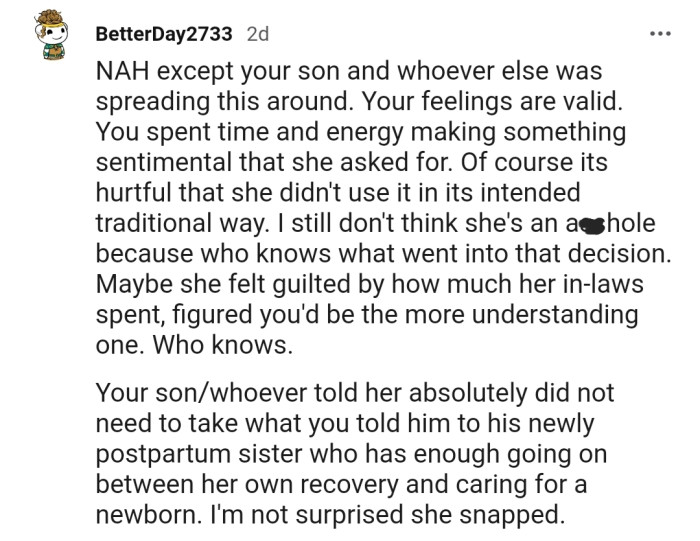 "Your Feelings Are Valid. You Spent Time and Energy Making Something Sentimental That She Asked For."