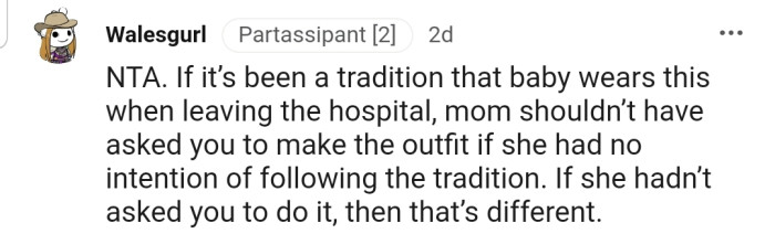 Reddit.comRecently, OP's Oldest Daughter Announced Her Pregnancy and Asked OP to Knit a Cloth for the Baby. However, OP Was Heartbroken to Discover That Her Daughter Made Use of the Cloth Offered by Her In-Laws Instead of the One She Asked OP to Knit