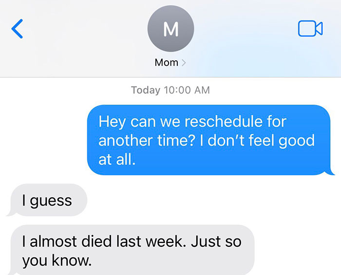 "The Subtle Way My Mom Shows Anger When Needing To Reschedule Lunch Plans"