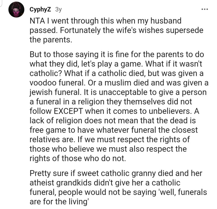 Reddit.comUnfortunately, OP's second atheist brother passed away shortly after. And their dad is planning a Catholic funeral again