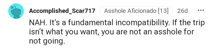 OP then considered opting out of the trip, which may cause it to fall apart. This led him to ask the WIBTAH question.