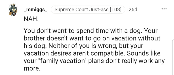 Redditor Contemplates Opting Out Of Family Vacation After Brother Insists On Bringing His Dog