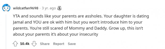 However, the Redditor forbade his daughter from doing so. He claims he has no problem with Jamal, but he doubts that his parents will feel the same way.